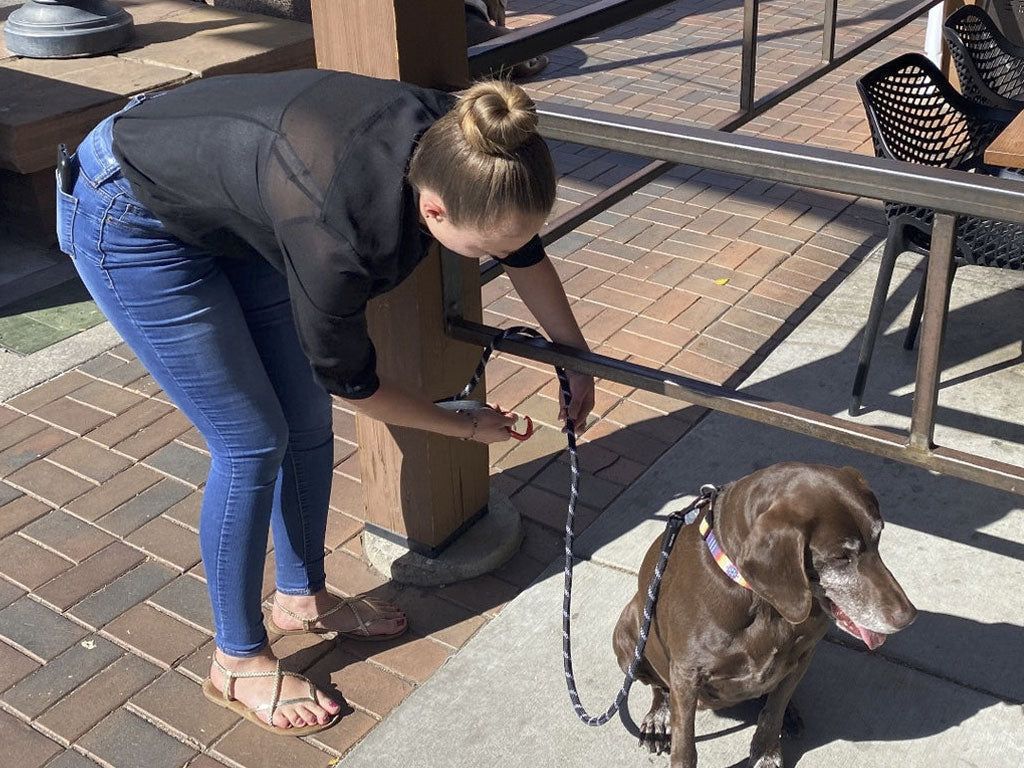 - Locking carabiner that attaches to the dog, to keep them from breaking free